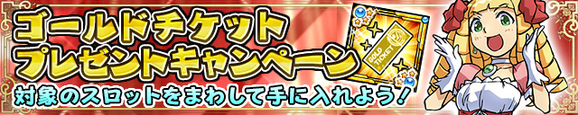 キャンペーン対象のスロットを規定回数まわすと、ゲーム内アイテム「ゴールドチケット」を1枚GETできるチャンス!