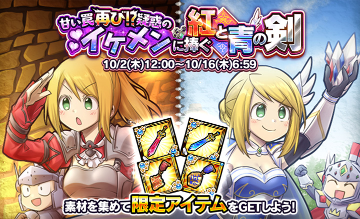 ▼甘い罠再び!?疑惑のイケメンに捧ぐ紅と青の剣チャレンジから手に入れよう!