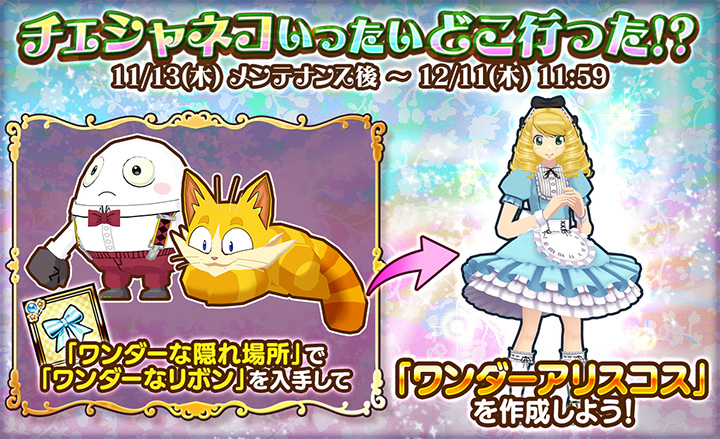 ▼ドレス「ワンダーアリスコス」「茶会のワンダーアリスコス」「ウェア・ワンダーハート姫」を装備して手に入れよう!