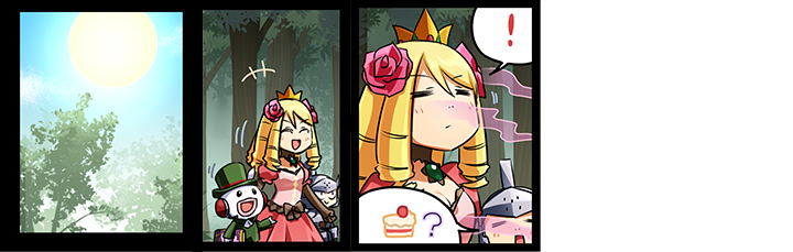 密かに「お菓子の家」を狙っていた姫さまは、悲しみに暮れてしまう。