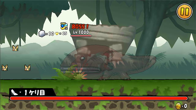 バトル1の敵は、体力が残り1の状態で体当たりしないと倒せないので注意!